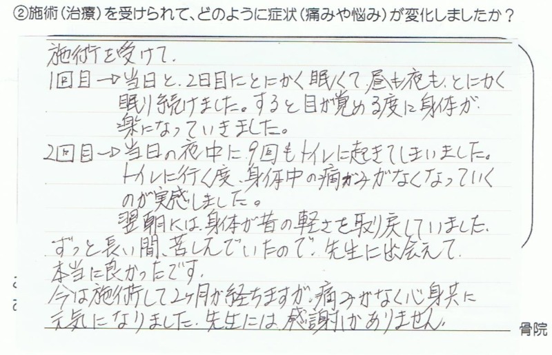 ↓はその一例で、ほさき整骨院で施術を受けられた患者さんの感想です。